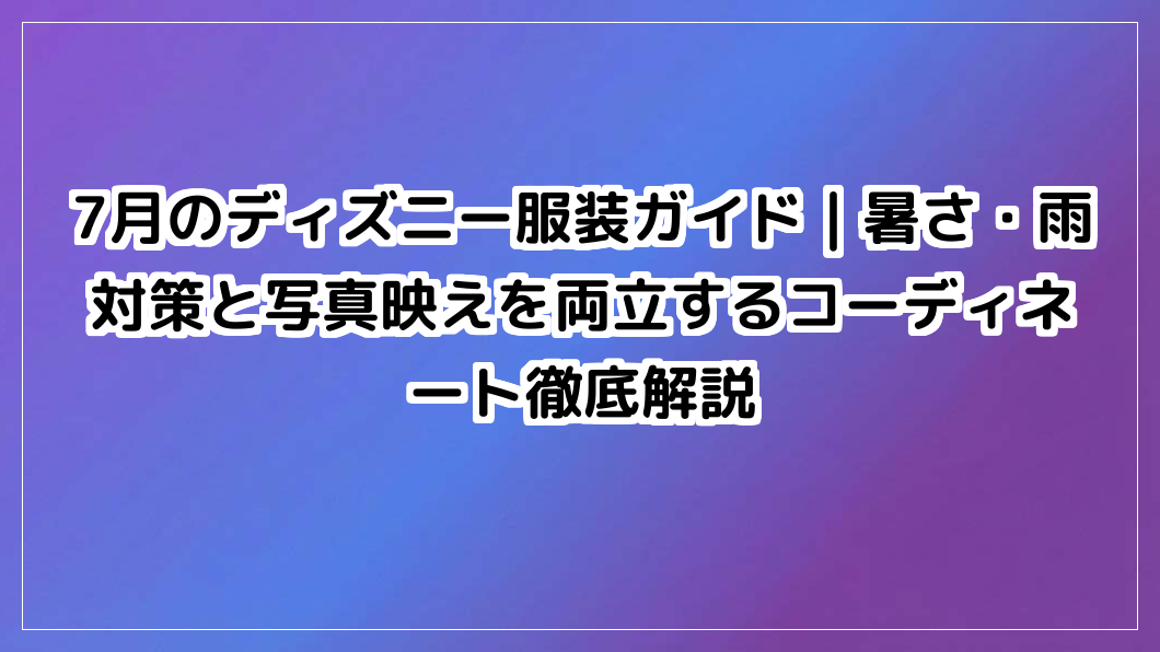 7月のディズニー服装で悩んでいませんか?この記事では、暑さ・雨対策と写真映えを両立する7月 ディズニー 服装の徹底解説。快適に可愛く過ごす賢いコーディネート術で、最高の思い出を作りましょう!