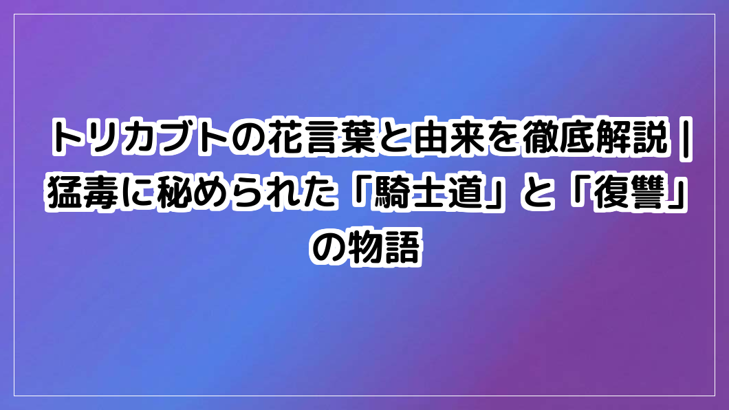 あなたは、トリカブトという名を聞いて何を思い浮かべるでしょうか。多くの人は「怖い毒草」というイメージを抱くかもしれません。しかし、その花言葉には「騎士道」という誇り高い響きと、「復讐」という血塗られた言葉が共存しています。なぜ、これほどまでに対極にある言葉が一つの花に託されたのか。その謎を解く鍵は、花の形と人類が歩んできた歴史の中に隠されています。