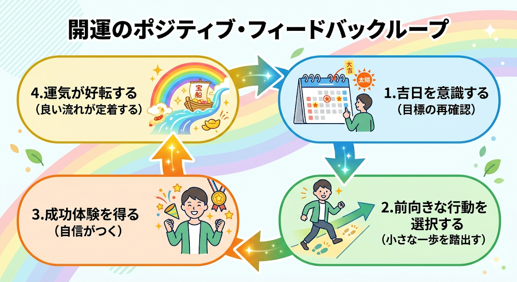 吉日を「新しいことを始める日」と決めておくことは、脳に「今日は特別な日だ」という合図(プライミング)を送る行為です。これにより、普段よりも集中力が高まり、目標達成に向けたパフォーマンスが向上しやすくなります。