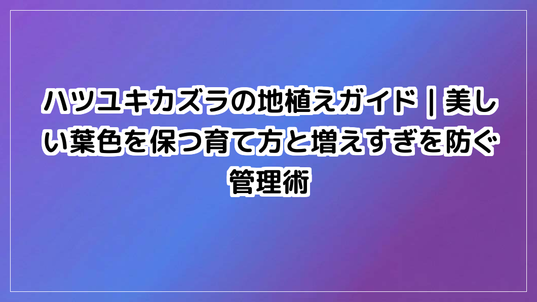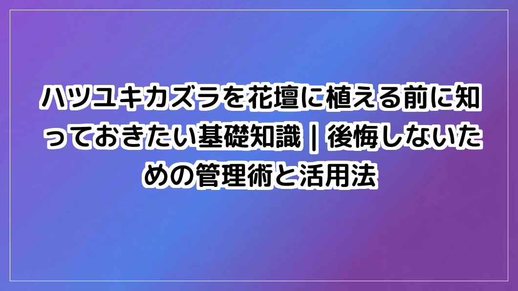 ハツユキカズラを花壇に植える前に知っておきたい基礎知識|後悔しないための管理術と活用法