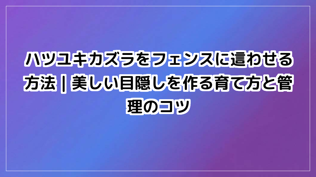 ハツユキカズラをフェンスに這わせる方法|美しい目隠しを作る育て方と管理のコツ