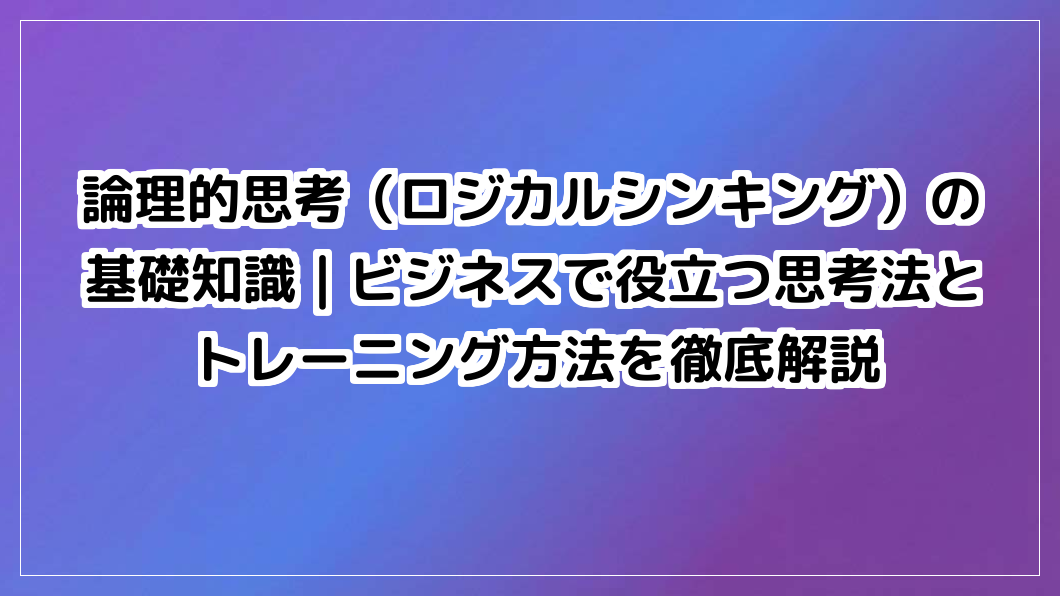 ビジネスで「話が伝わらない」「議論がまとまらない」と悩んでいませんか?論理的思考(ロジカルシンキング)は、物事を体系的に整理し、最短で課題解決へ導く思考法です。基礎知識からトレーニングまで徹底解説。