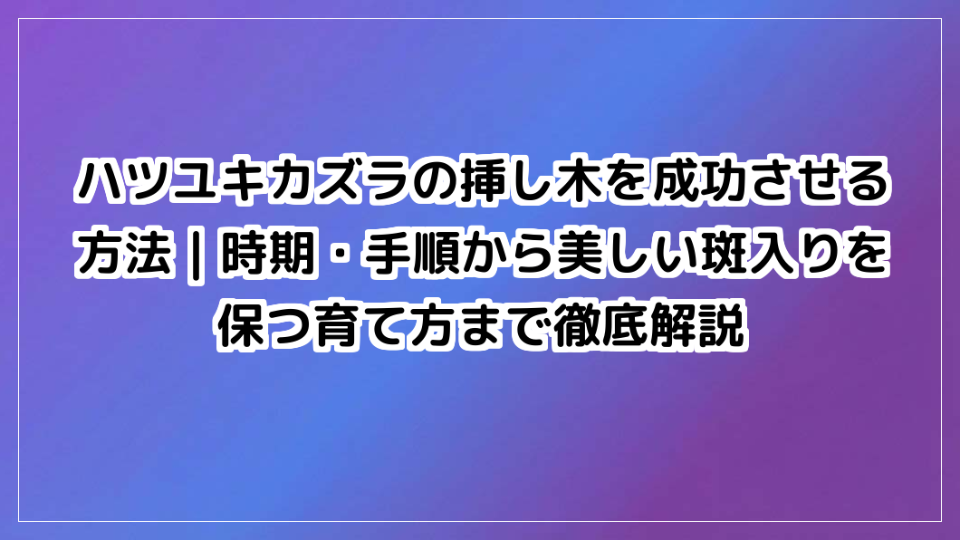 ハツユキカズラの挿し木を成功させる徹底ガイド。最適な時期や手順、必要なものから、美しい斑入りを保つ育て方まで解説。初心者でも失敗せず簡単に増やせます。