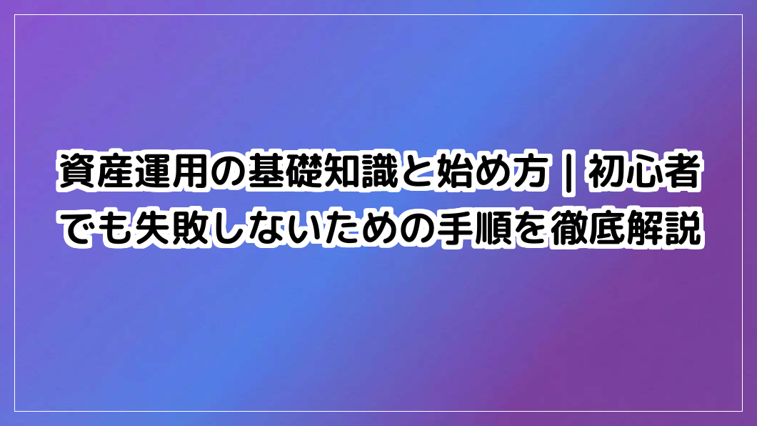 資産運用の基礎知識と始め方|初心者でも失敗しないための手順を徹底解説