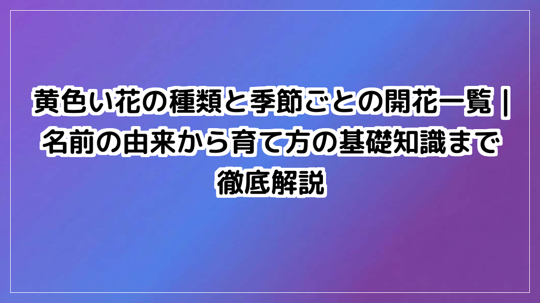 黄色い花の種類と季節ごとの開花一覧|名前の由来から育て方の基礎知識まで徹底解説