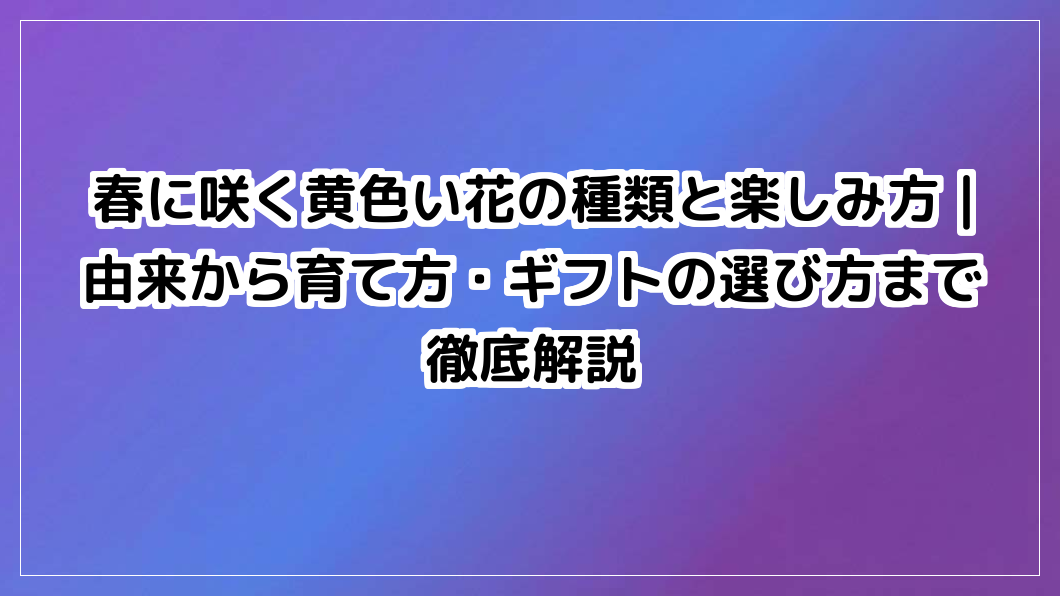 春に咲く黄色い花の種類と楽しみ方|由来から育て方・ギフトの選び方まで徹底解説