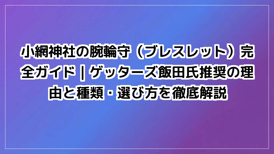 ゲッターズ飯田氏が唯一推奨する小網神社の強運厄除けブレスレット。種類と選び方を徹底解説し、あなたに最適な一本で運気を掴む方法を紹介。
