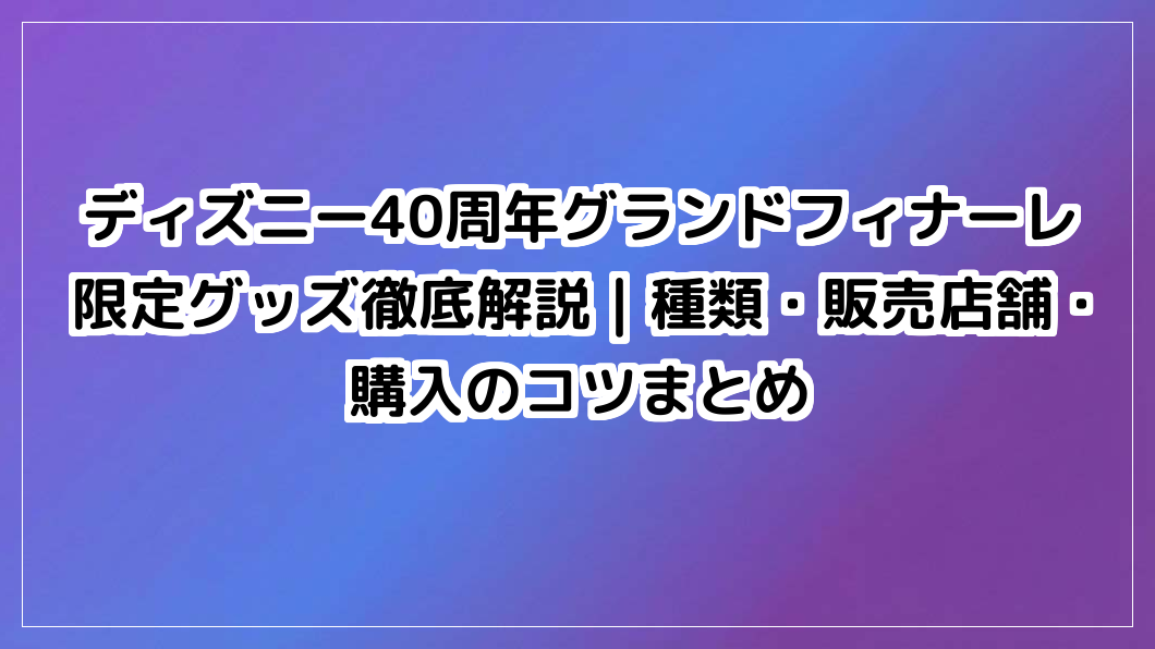 ディズニー40周年グランドフィナーレの特別なグッズを徹底解説!種類や販売店舗、購入のコツまで網羅し、大切な思い出を形にするための完全ガイドをお届けします。