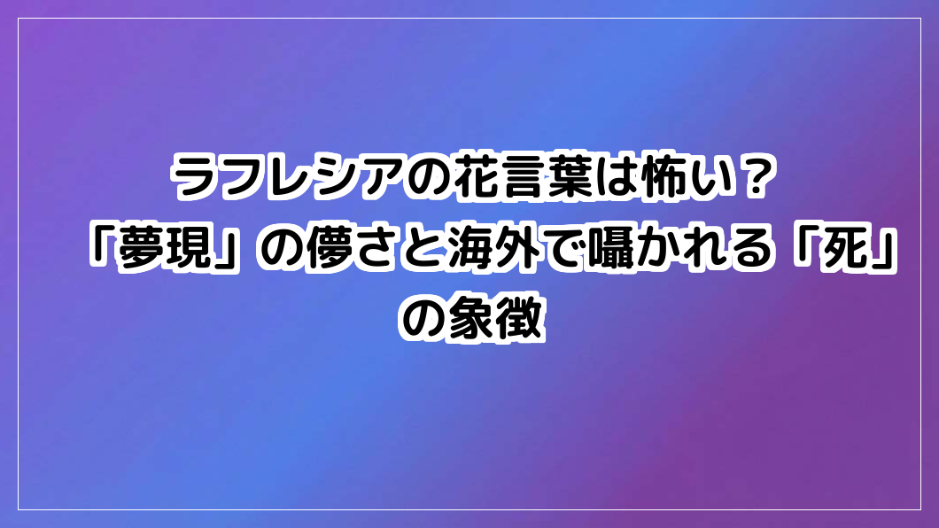 ラフレシアの花言葉は怖いと思いきや夢現。しかし海外では死の象徴、生態は遺伝子を盗む怪物。発見者に起きた悲劇まで、裏に隠された真実を解説します。