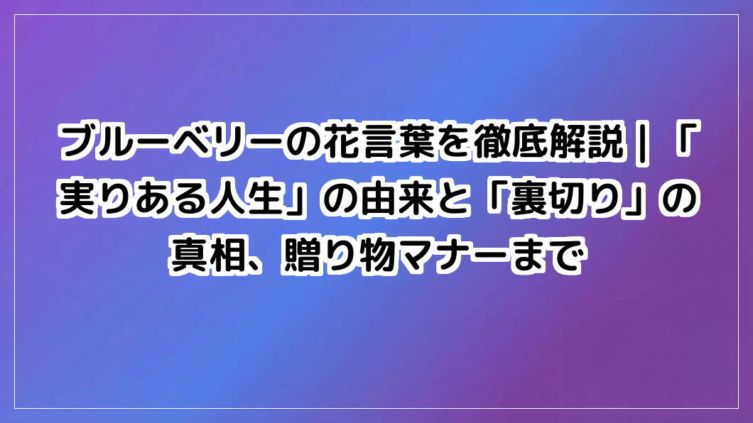 ブルーベリーには、確かに「裏切り」という西洋由来の古い言葉が存在します。しかし、それは広大な植物文化の一片に過ぎません。日本でこの植物が愛されている理由は、その一粒一粒に宿る「実りある人生」への願いや、真実を見抜く「知性」という、前向きなエネルギーにあります。