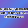 山羊座が社会的な基盤を固め、蟹座が家庭内の情緒的な充足を担うことで、盤石な家庭環境が作られます。山羊座が仕事に没頭しすぎたり、蟹座が相手に依存しすぎたりしないよう、お互いの役割を尊重し、感謝を言葉にすることが円満の秘訣です。