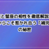 山羊座が「社会的な顔」なら、蟹座は「家庭的な心」を象徴します。向き合う角度は違いますが、目指すゴール(安心できる居場所)が同じであれば、最強の協力関係になれます。