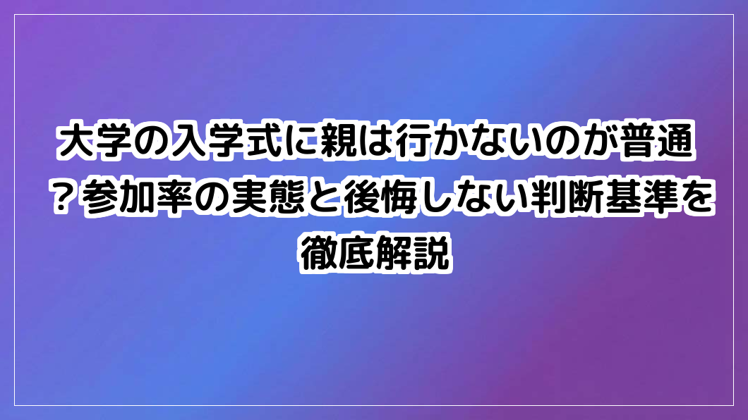 大学の入学式に親は行かないのが普通?参加率の実態と後悔しない判断基準を徹底解説