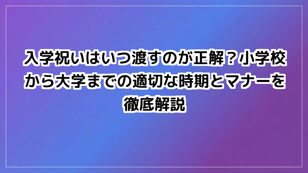 入学祝いはいつ渡すのが正解?小学校から大学まで、適切な時期とマナーで迷うあなたの不安を解消。失礼なく、心から喜ばれる渡し方を徹底解説し、自信を持ってお祝いを贈りましょう。