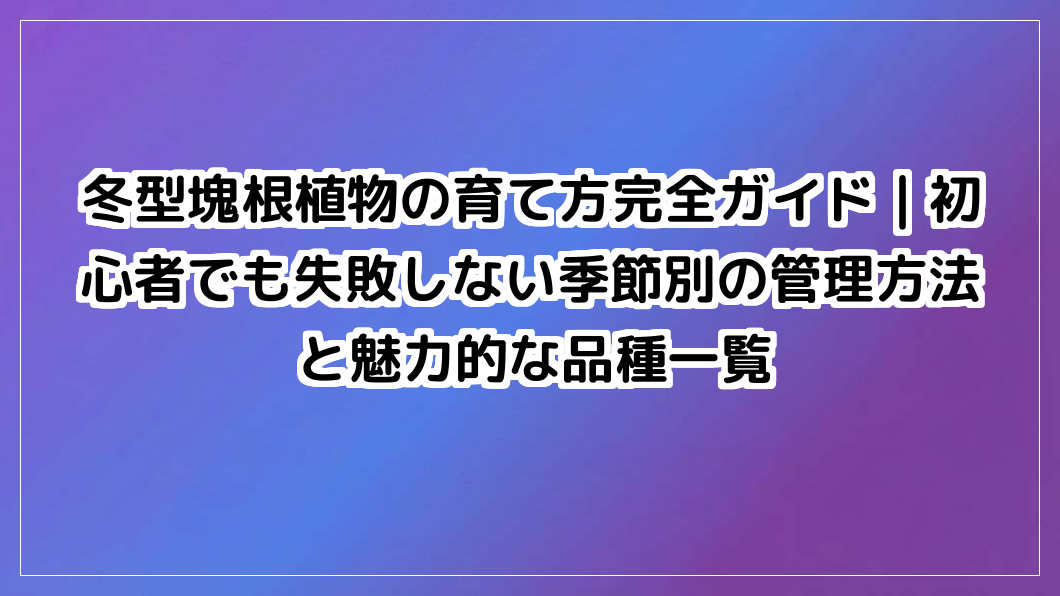 | タイプ | 主な生長期 | 主な休眠期 | 代表的な種類 | 管理のポイント |