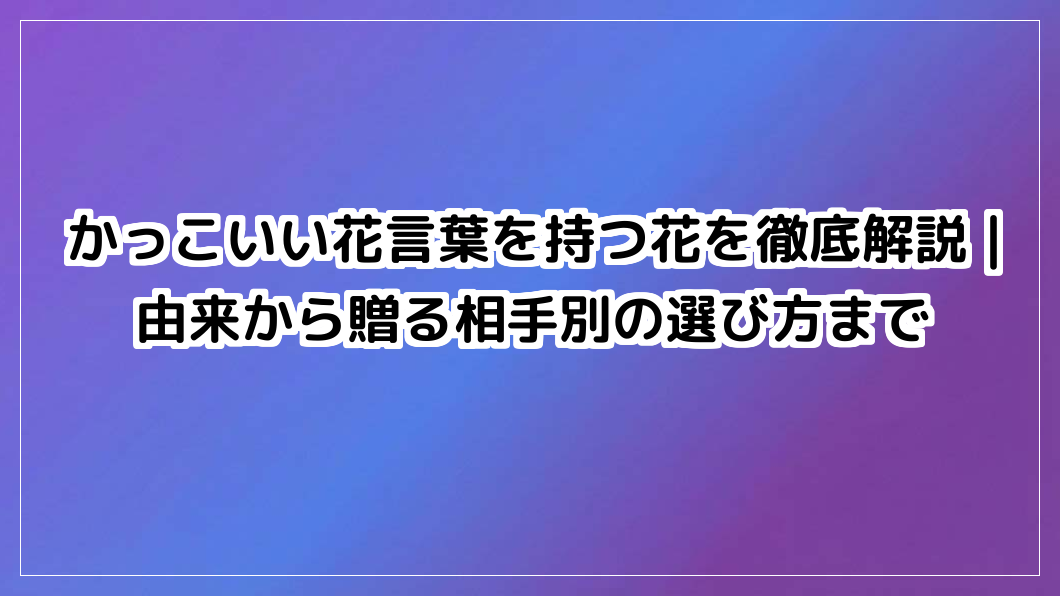 「かっこいい花言葉」を持つ花たちは、あなたの言葉にできない決意や、相手への深い敬意を、静かに、しかし力強く代弁してくれます。この記事を通じて、あなたの想いに最も近い一輪が見つかったなら幸いです。