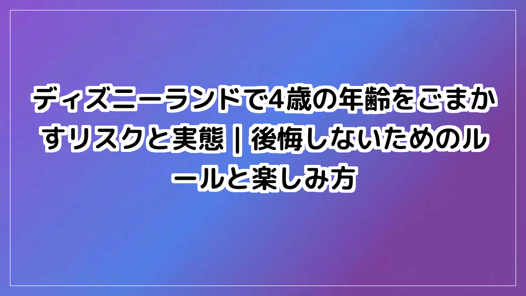 ディズニーランドで4歳の子を「まだ3歳」と年齢をごまかすリスクは?「ばれた」時の実態と後悔しない楽しみ方を解説。家族で最高の思い出作りへ。