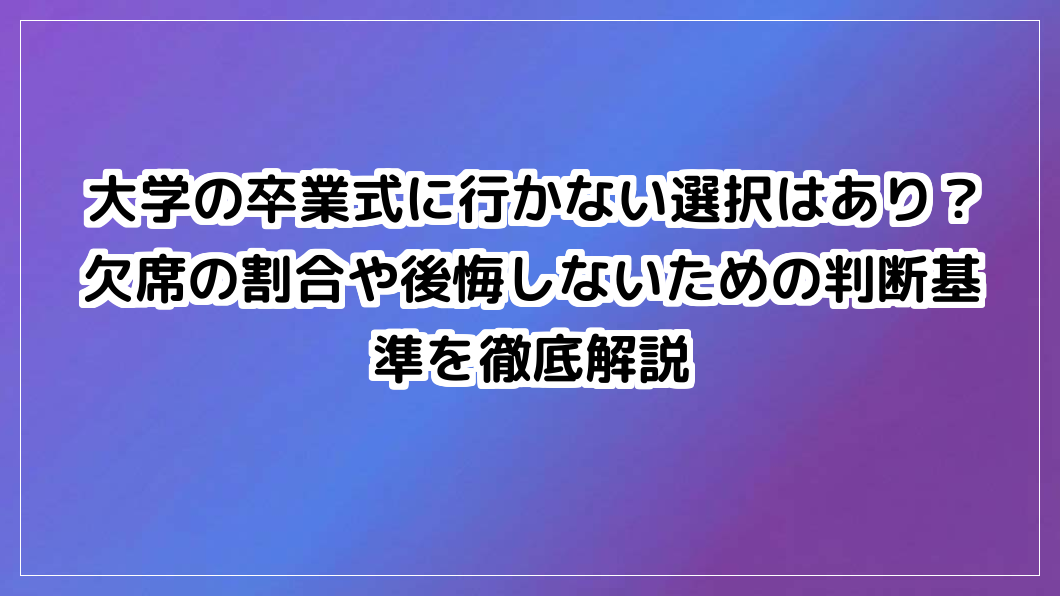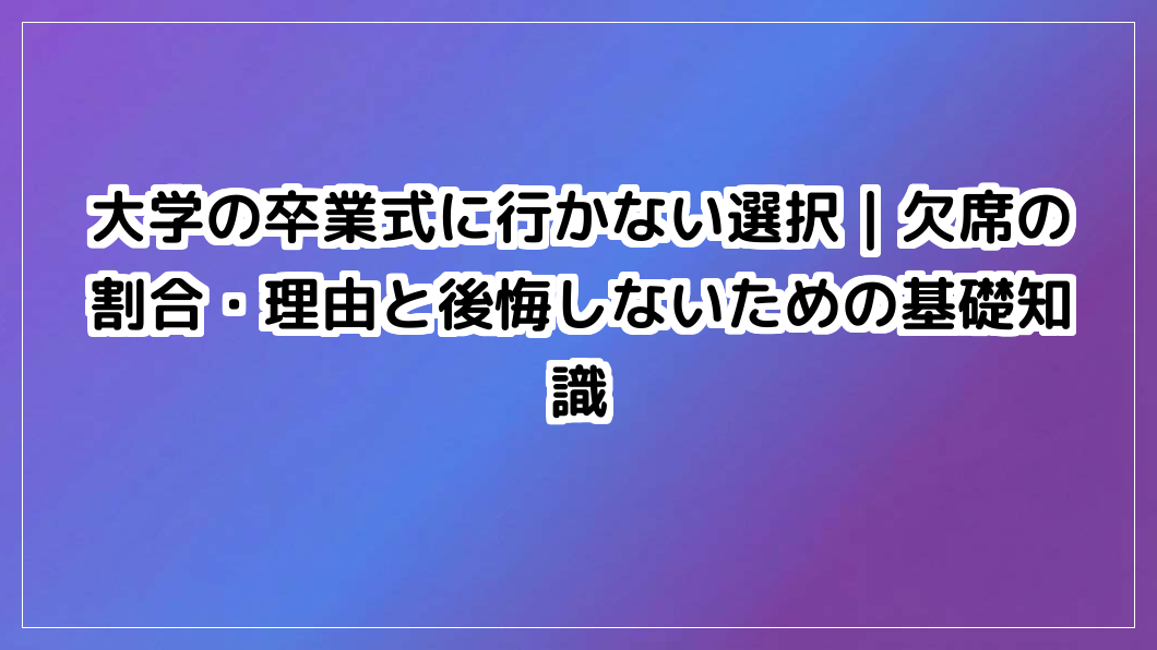 「大学の卒業式に行かない」と悩んでいませんか?欠席の割合や後悔しないための判断基準を徹底解説。あなたの迷いを晴らし、納得の選択を見つけましょう。