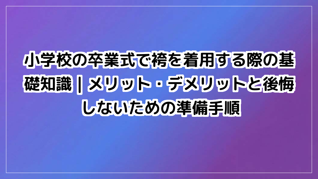 「小学校卒業式袴 おかしい」と不安を感じていませんか?華やかな袴姿への憧れと、着崩れ・トイレ・周囲の目といった悩みを解決。メリット・デメリットから後悔しない準備手順まで詳しく解説します。