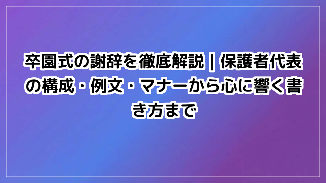卒園式の保護者代表謝辞で、心からの感謝を伝えたいあなたへ。構成、例文、マナーから心に響く書き方まで徹底解説。不安を自信に変え、最高の謝辞で感動の門出を演出しませんか?