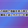 短すぎると物足りず、長すぎると式全体の進行に影響します。1000文字程度を目安に作成し、実際に声に出して時間を計ってみることをおすすめします。