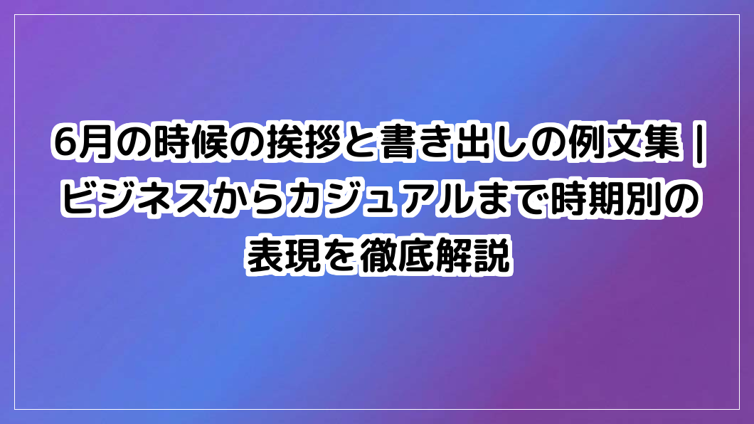 6月の挨拶文書き出しに悩んでいませんか?ビジネスからカジュアルまで、上旬・中旬・下旬ごとに最適な時候の挨拶と書き出し例文をプロが徹底解説。好印象を与え、相手との距離を縮める秘訣。