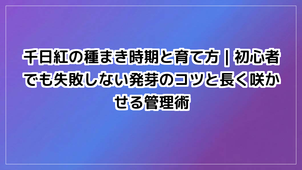 お気に入りの千日紅を冬の寒さから守り、来年もまた鮮やかな花を咲かせてみませんか?まずは今日、あなたの株の根元をチェックし、どの方法で冬を越させるか決めることから始めてみましょう。