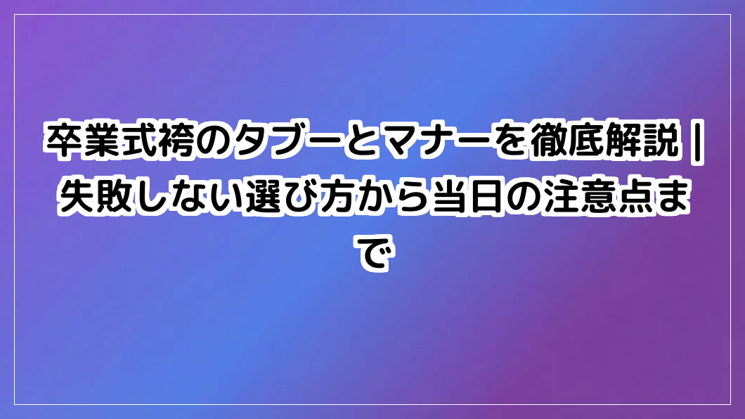 卒業式袴のタブーとマナーを徹底解説。色・柄・丈の失敗しない選び方、当日の注意点まで網羅し、不安を解消。自信を持って最高の卒業式を迎えましょう。