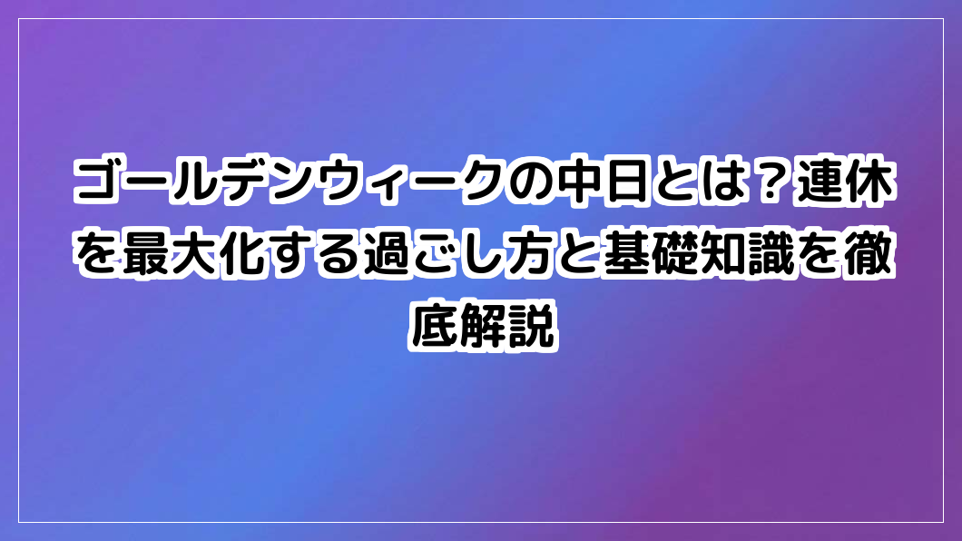 ゴールデンウィークの中日を徹底解説。有給活用で連休を最大化し、充実した休日を過ごすための計画術を紹介。ゴールデンウイーク 中 日の過ごし方で差をつけよう。
