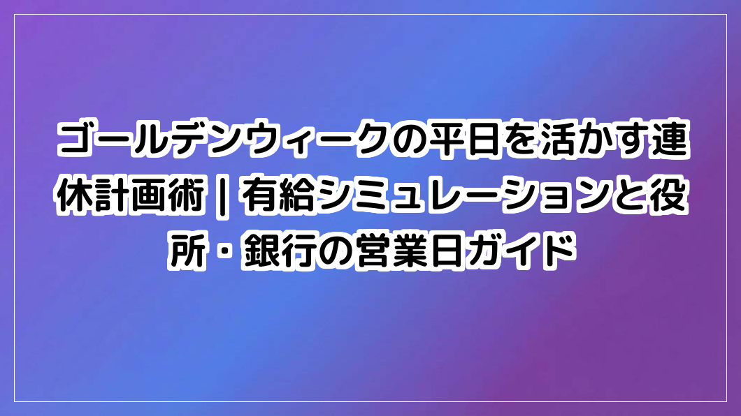 ゴールデンウィークの平日を活かす連休計画術|有給シミュレーションと役所・銀行の営業日ガイド