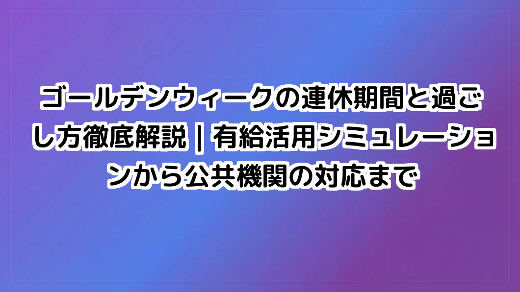 ゴールデンウィークの連休期間と過ごし方徹底解説|有給活用シミュレーションから公共機関の対応まで