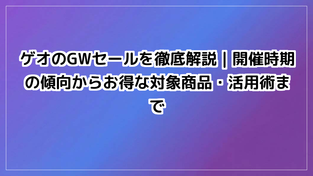 ゲオのGWセールを徹底解説!開催時期の傾向から、ゲーム・スマホなどお得な対象商品、賢い活用術まで網羅。GWのお買い物を最大限に楽しむための情報が満載です。