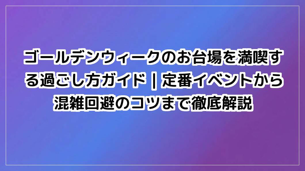 ゴールデンウィークのお台場を賢く楽しむならこの記事。定番イベントから混雑回避の裏ワザまで、GWのお台場を家族やカップルが最高に満喫する過ごし方を徹底解説します。