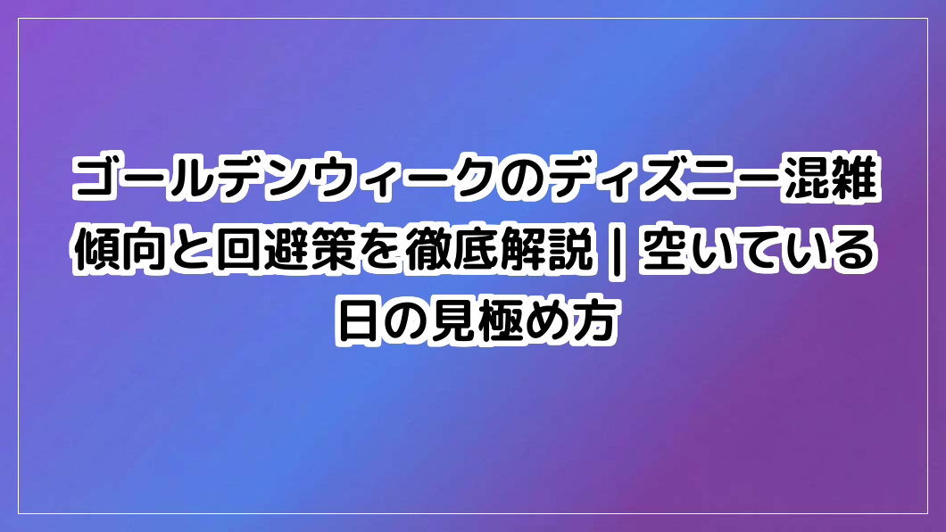 GW明けのディズニー混雑を回避!空いている日の見極め方から、アプリ活用術、効率的な回り方まで徹底ガイド。データに基づいた賢い楽しみ方で最高の思い出を。