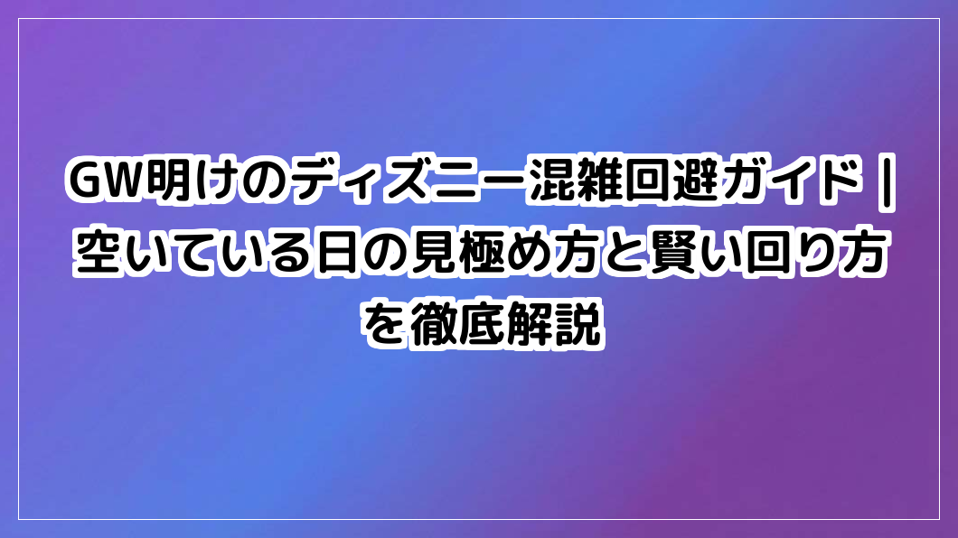GW明けのディズニー混雑回避ガイド|空いている日の見極め方と賢い回り方を徹底解説