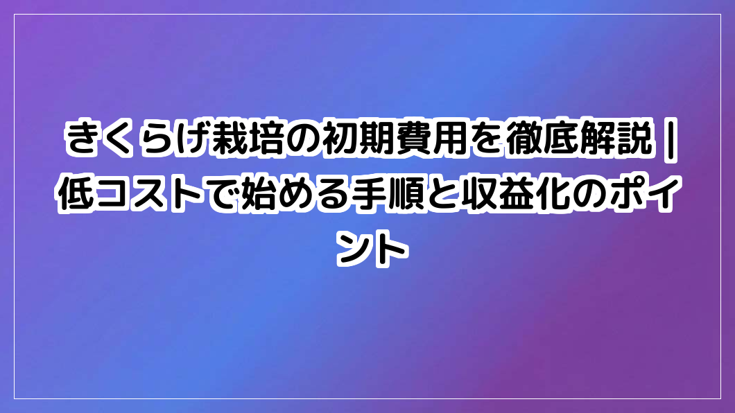 きくらげ栽培の初期費用はいくら?規模別の費用目安、低コストで始める手順、補助金活用、収益化のポイントを徹底解説。あなたの最適なスタートラインが見つかります。