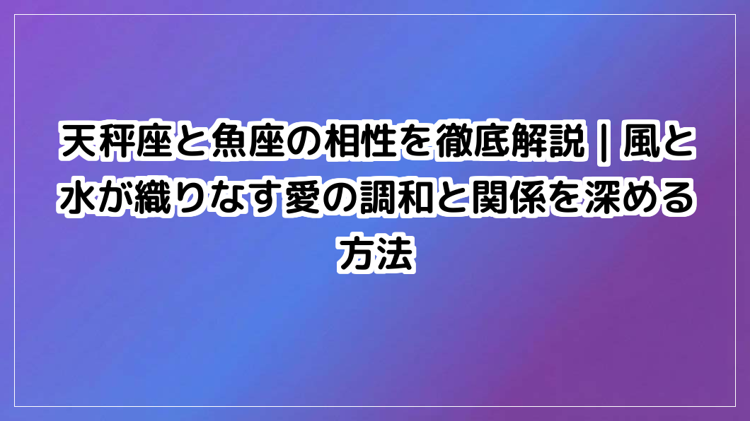 天秤座と魚座の相性を占星術で徹底解説。風と水が織りなす愛の調和を保ち、関係を深める方法を伝授。お互いの違いを理解し、絆を補完に変えるヒントが見つかります。