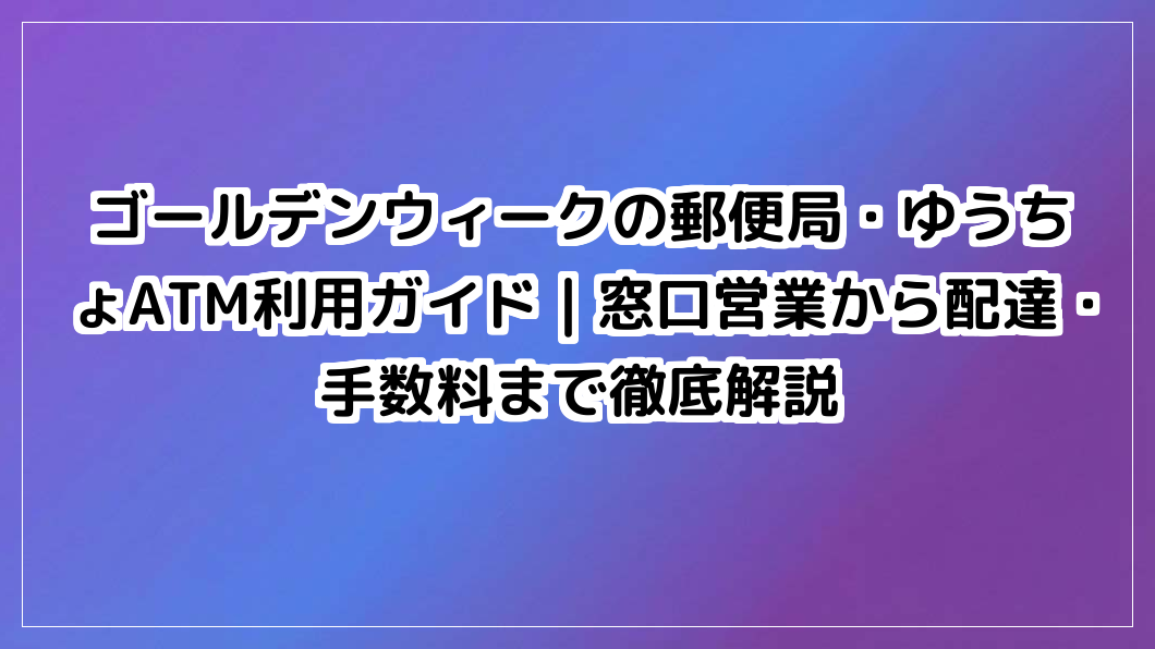 ゴールデンウィークの郵便局・ゆうちょATM利用ガイド|窓口営業から配達・手数料まで徹底解説