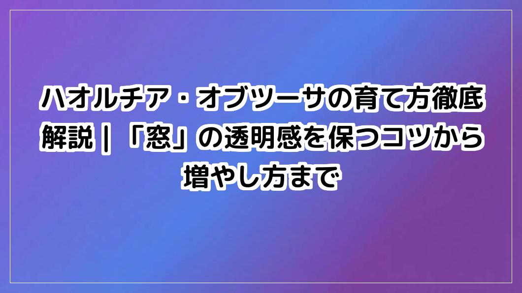 ハオルチア オブツーサの神秘的な透明感を保ちたいですか?「砂漠の宝石」と呼ばれるオブツーサの美しい「窓」を輝かせ続ける育て方から、光のコントロール、増やし方まで徹底解説。初心者でも安心!