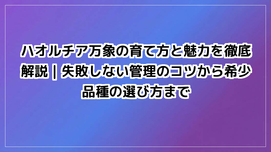 本記事では、あなたが憧れのハオルチア万象を失敗せずに美しく育て、その「生ける宝石」としての魅力を最大限に引き出すための具体的な管理術を伝授します。