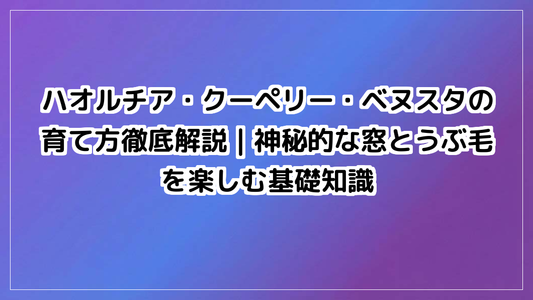 ハオルチア クーペリー・ベヌスタの神秘的な窓とうぶ毛の魅力を自宅で。初心者でも安心して、美しさを最大限に引き出し長く健やかに育てる具体的な方法を徹底解説。