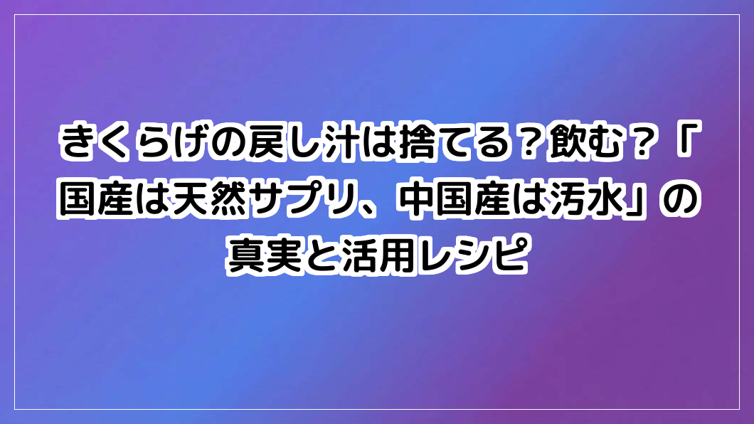 まずは一度、産地直送の新鮮な「国産生きくらげ」の食感を体験してみませんか?あなたの想いを届けてみませんか。あなたの賢い選択が、家族の健やかな明日を作ります。