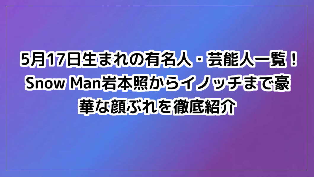 お笑い界では、ナインティナインの岡村隆史さんが、長年バラエティの第一線で老若男女に愛され続けています。アイドル界においても、AKB48の黄金期を支えた「神7」の一人、板野友美さんや、次世代を担うDXTEENの大久保波留さんなど、時代を彩る顔ぶれが並びます。
