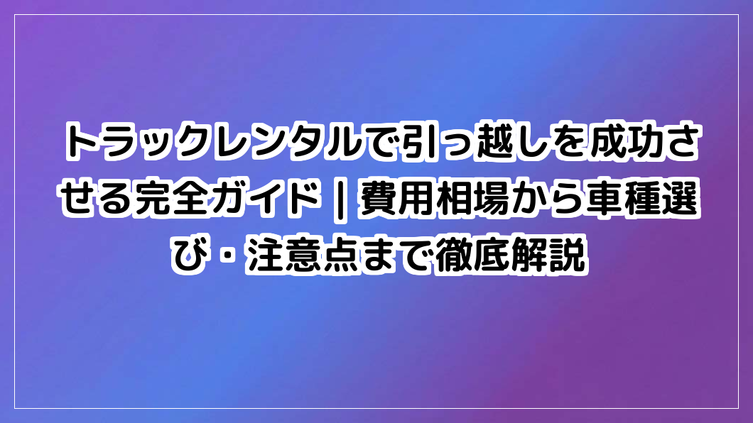 トラックレンタルで引っ越しを成功させたい方必見。費用相場から車種選び、注意点まで網羅。自力で安く運ぶ完全ガイド。