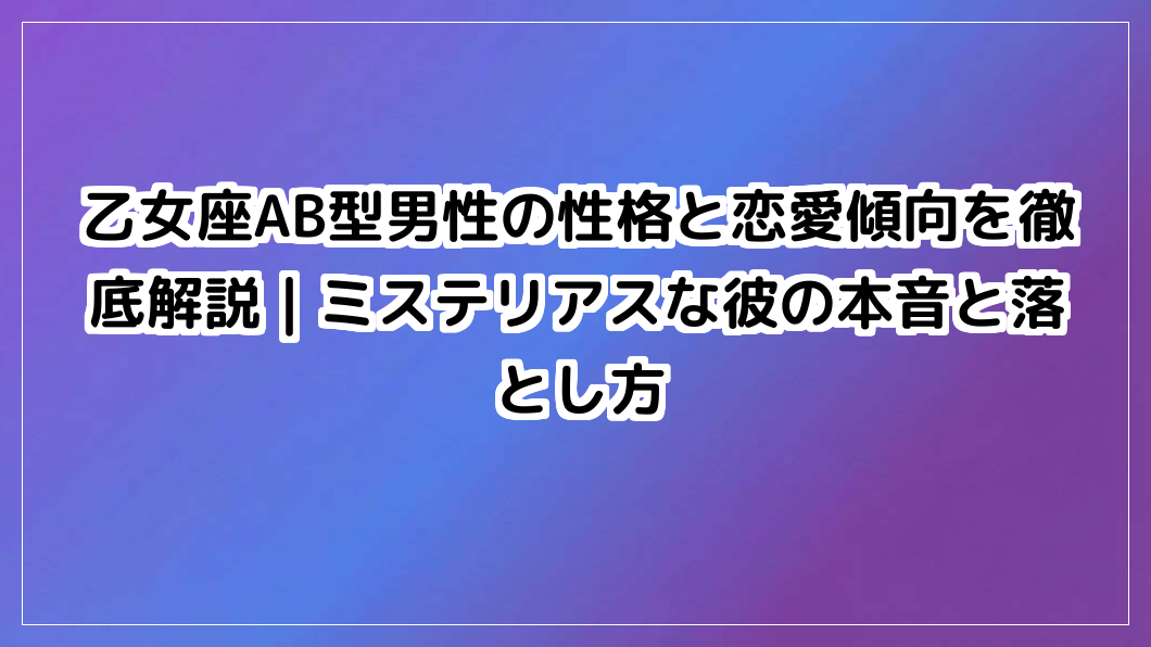 乙女座AB型男性の性格と恋愛傾向を徹底解説|ミステリアスな彼の本音と落とし方