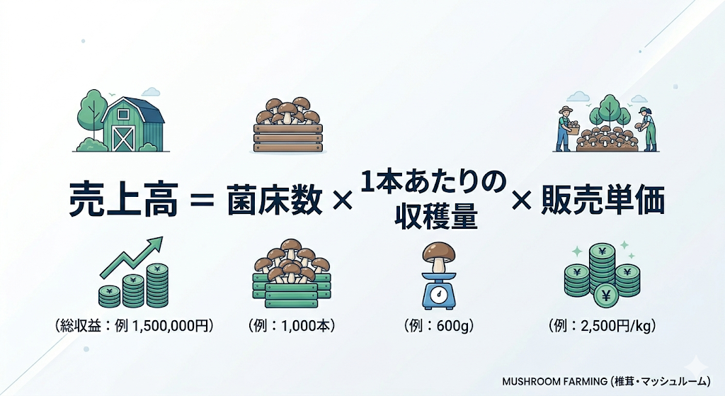 一般的に、きくらげ栽培の収益性は、栽培する菌床の数と、1袋あたりの収穫量(歩留まり)、そして販売単価によって決まります。