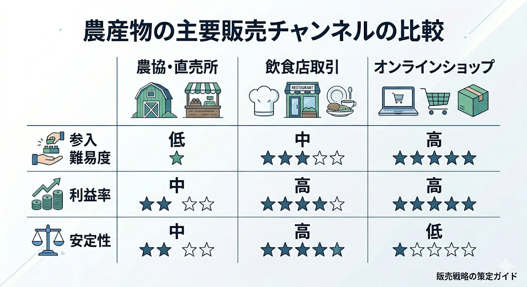 農業ビジネスで最も多い失敗は「良いものを作れば売れる」という思い込みです。収穫が始まる前に、どこに売るかを決めておく「出口戦略」が、あなたの事業の成否を分けます。