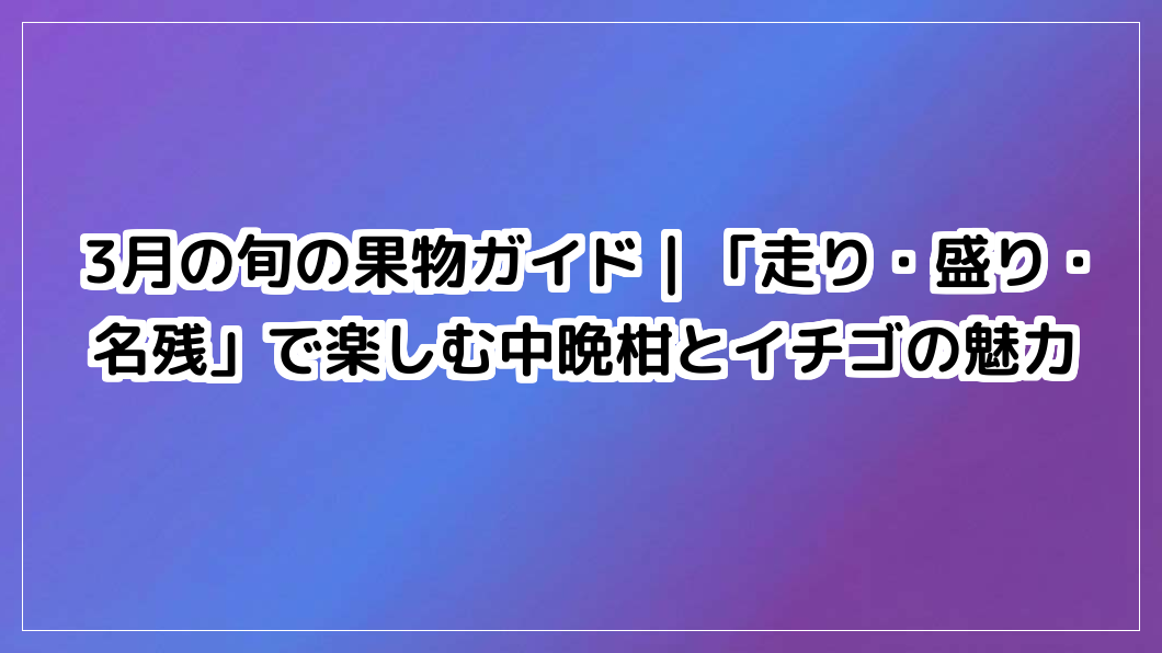 3月に旬を迎える果物、中晩柑とイチゴの魅力をご紹介。最高の味わいを「走り・盛り・名残」の3段階で楽しむ秘訣を知り、3月果物の美味しさを堪能しましょう。