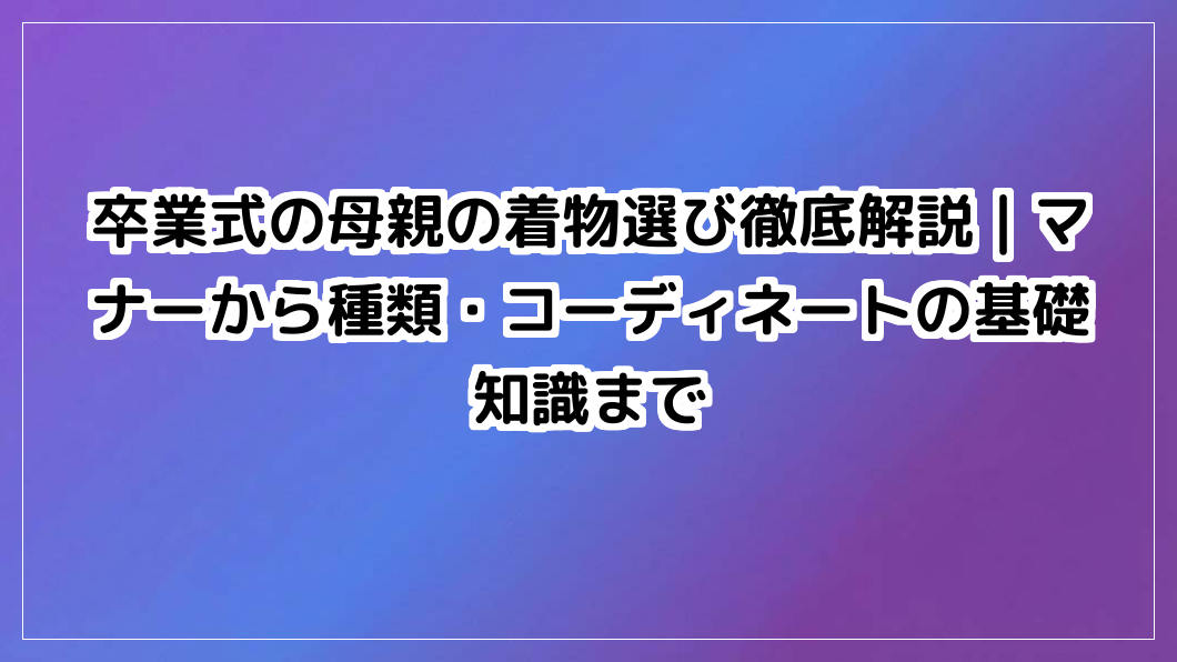 卒業式の母親の着物選び徹底解説|マナーから種類・コーディネートの基礎知識まで