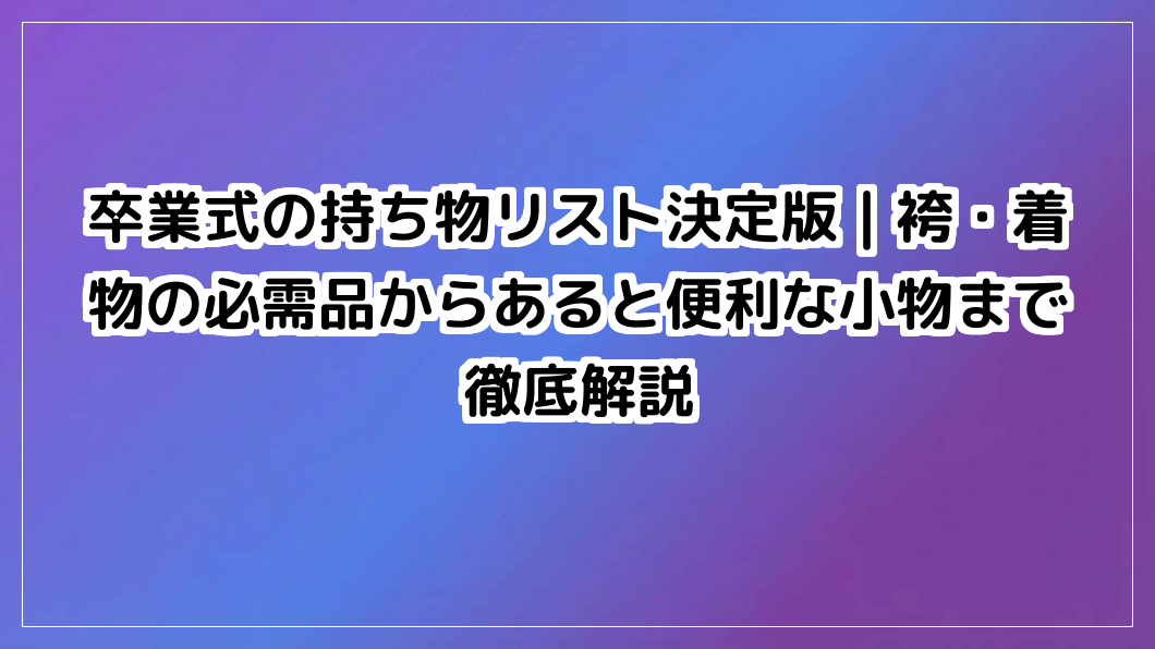 卒業式の持ち物リスト決定版|袴・着物の必需品からあると便利な小物まで徹底解説